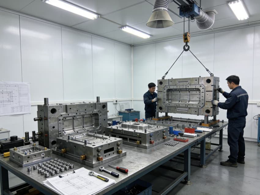 白色墻面采用工業(yè)級(jí)潔凈涂層,無縫拼接搭配圓弧陰陽角設(shè)計(jì),杜絕積塵死角,減少粉塵對(duì)模具精度的影響。車間劃分加工區(qū)、檢測(cè)區(qū)、調(diào)試區(qū)等功能區(qū)域,布局科學(xué)合理,加工區(qū)增設(shè)阻尼減震墊層降低設(shè)備振動(dòng)干擾,檢測(cè)區(qū)預(yù)留精密儀器安裝位與恒溫調(diào)控接口,各區(qū)域均配備標(biāo)準(zhǔn)化管線預(yù)埋與設(shè)備固定點(diǎn)位,全方位保障模具制造的精準(zhǔn)性與穩(wěn)定性。