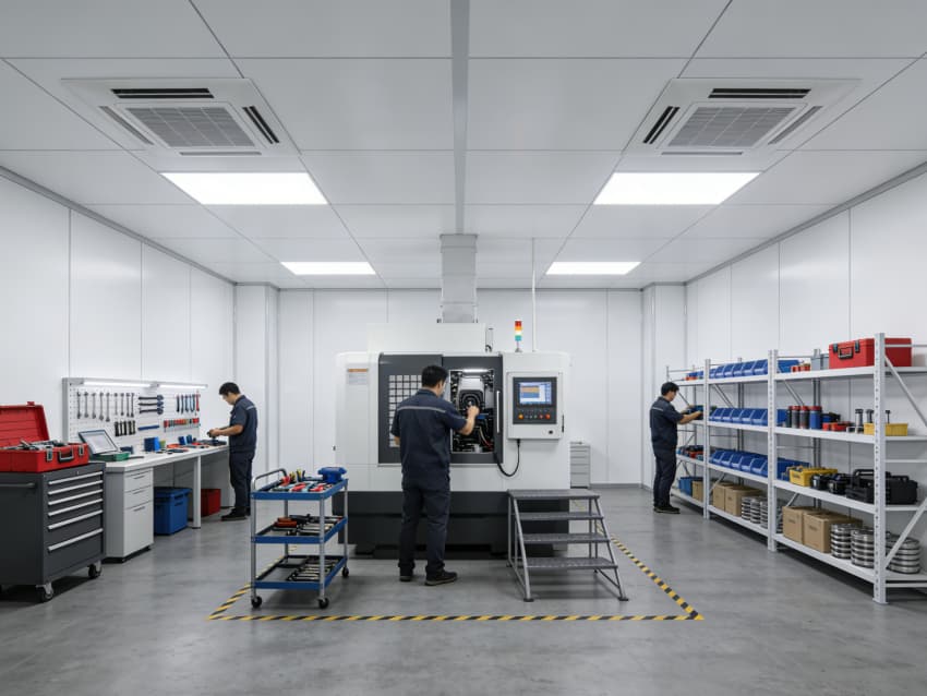 車間全域搭載高精度恒溫恒濕調(diào)控系統(tǒng),可實(shí)現(xiàn)溫濕度精準(zhǔn)管控,誤差穩(wěn)定在±0.5℃、±3%RH內(nèi),為精密生產(chǎn)提供恒定環(huán)境保障。各功能區(qū)域布局科學(xué),涵蓋核心加工區(qū)、檢測(cè)區(qū)、倉(cāng)儲(chǔ)區(qū)等,均預(yù)留標(biāo)準(zhǔn)化設(shè)備安裝位與管線接口,適配自動(dòng)化生產(chǎn)線布局。整體空間既滿足潔凈生產(chǎn)要求,又兼顧運(yùn)維便捷性,全方位護(hù)航高端產(chǎn)品生產(chǎn)品質(zhì)。