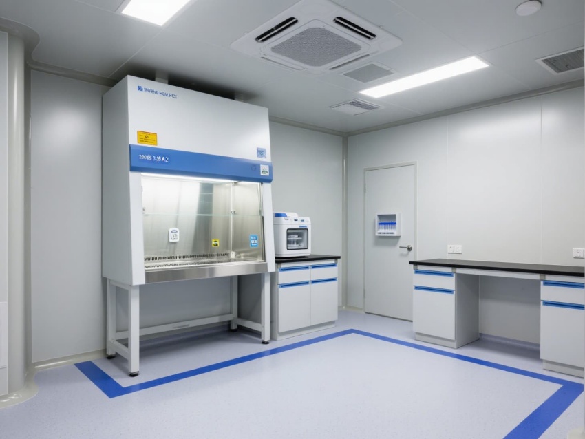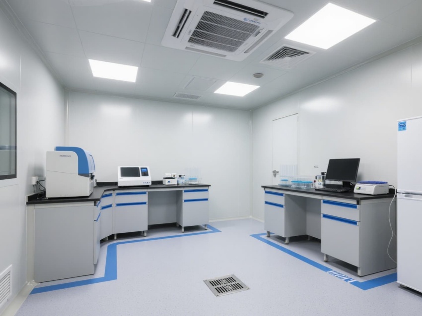 頂部高效過濾器與定向氣流系統(tǒng)維持每小時12-15次空氣置換,確保潔凈度達(dá)標(biāo)。墻面嵌入式消毒裝置與紫外燈系統(tǒng),可實(shí)現(xiàn)每日全方位消殺。實(shí)驗(yàn)區(qū)配備負(fù)壓通風(fēng)柜與生物安全柜,臺面采用耐腐蝕環(huán)氧樹脂材質(zhì),適配PCR反應(yīng)的精密操作。