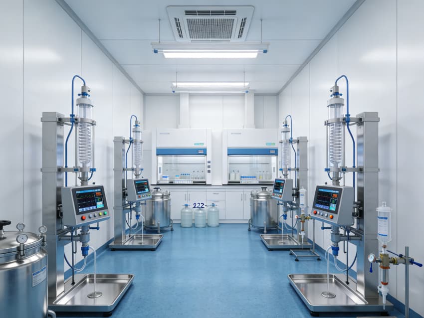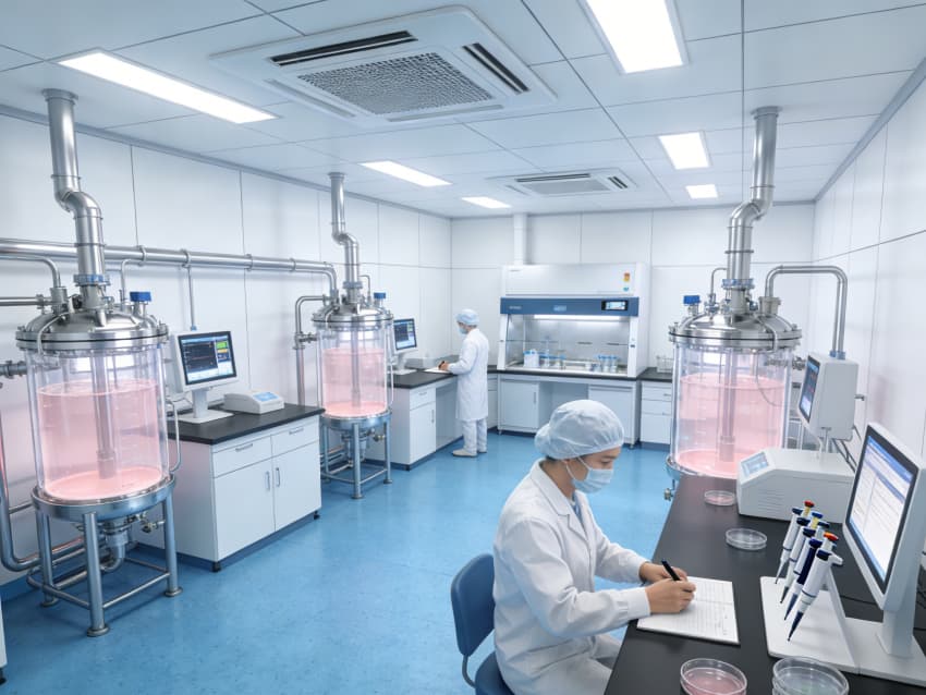 白色墻面采用食品級潔凈抗菌涂層,推行無縫拼接與高精度找直工藝,陰陽角采用R50圓弧倒角設(shè)計,徹底消除清潔死角。車間科學(xué)劃分細(xì)胞培養(yǎng)區(qū)、病毒載體構(gòu)建區(qū)、純化區(qū)等功能區(qū)域,各區(qū)域均配備獨立層流凈化系統(tǒng)與負(fù)壓防護(hù)裝置,細(xì)胞培養(yǎng)區(qū)預(yù)留恒溫恒濕調(diào)控接口,純化區(qū)預(yù)設(shè)無菌物料傳遞窗口,全方位保障CGT研發(fā)生產(chǎn)的安全性、合規(guī)性與穩(wěn)定性。