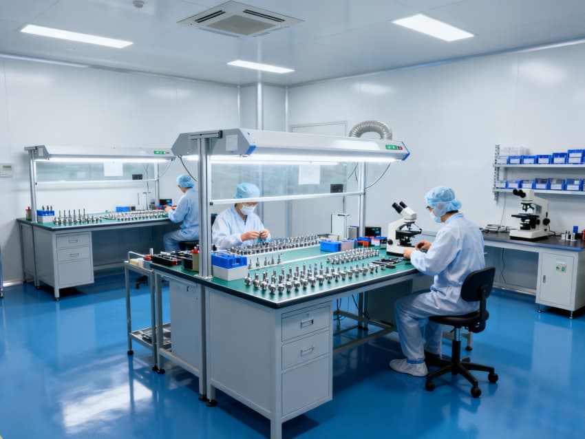 本無菌醫(yī)療器械生產(chǎn)廠房整體遵循GMP無菌生產(chǎn)標準,以藍色防靜電潔凈地坪搭配白色抗菌墻面,構建高效凈化體系,適配注射器、植入器械等無菌產(chǎn)品生產(chǎn)。凈化功能貫穿全空間,核心圍繞塵粒控制、微生物抑制及交叉污染防范,為產(chǎn)品質量筑牢第一道防線。