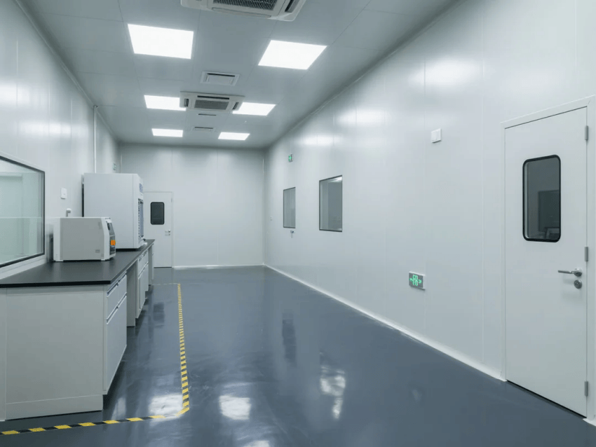 圍護系統采用50mm厚醫療級白色彩鋼板,獨創"三明治"密封結構,接縫氣密性達到ASTME283標準;
