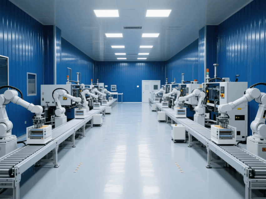 智能化配置:集成環(huán)境監(jiān)測系統(tǒng),實時顯示顆粒物、壓差及溫濕度數據;注塑機群配備智能看板,實現(xiàn)生產數據可視化。照明采用600x600mmLED潔凈平板燈,色溫5000K,照度均勻性達0.8以上。