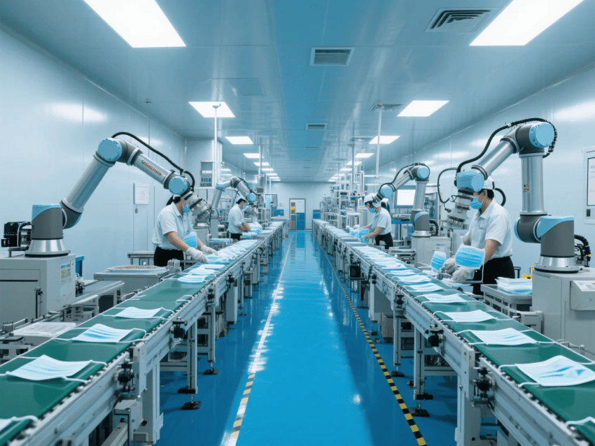 本方案采用"醫療工業極簡風",符合YY/T0969-2013口罩行業標準。車間按功能分區:
